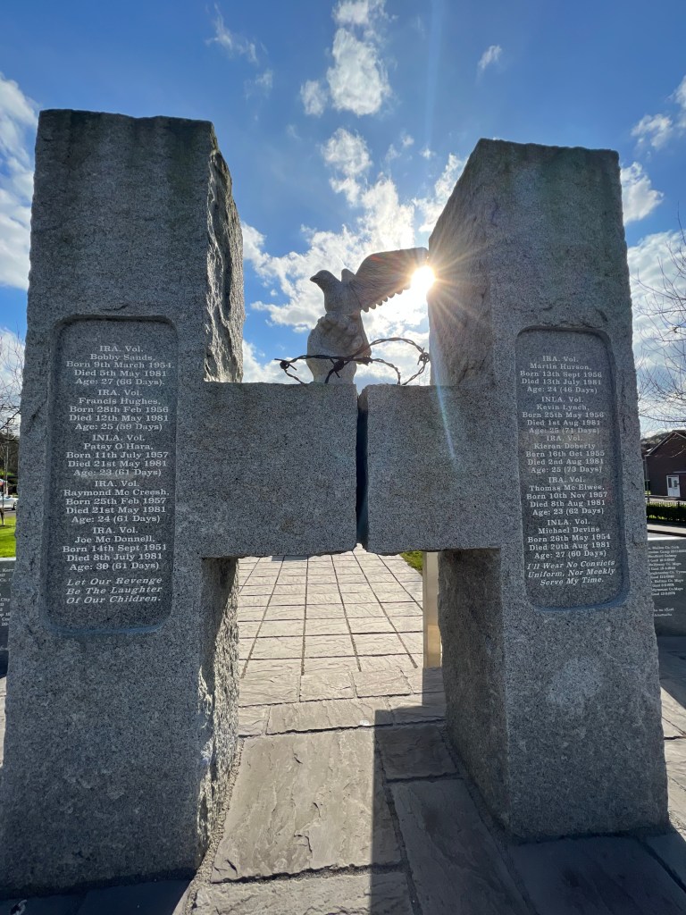 It was an emotional visit. I was moved to tears walking around the somber spot, particularly the monument to the H Block hunger strikers of Maze Prison, where 10 men died in protest in 1981. An inscription on the monument that hit me hard read: “Let our revenge be the laughter of our children.”