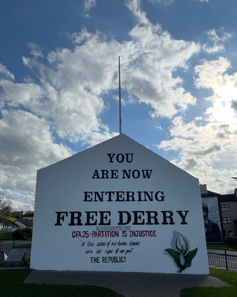 The atrocity is marked by a monument, which is very near Free Derry Corner and the Free Derry Wall, an important symbol of civil rights the world over. I happened to be visiting these sights on the 25th anniversary weekend of the Good Friday Agreement, which marked the end of the Troubles in 1998.