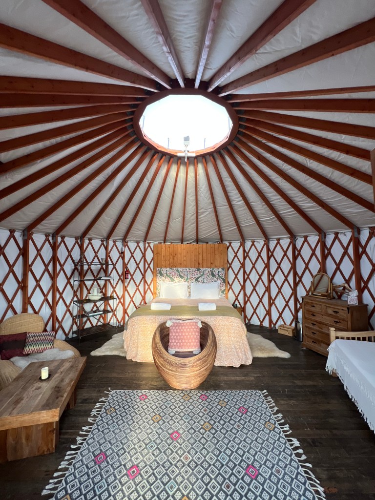 The yurt owner’s written directions and my downloaded map of the region got me there perfectly just as the sun was setting. I was the only person in the communal main lodge when I picked up my key, lanterns and reading lights from a little locker and headed to the electrify-free yurt, which sat alone in a bog, surrounded by trees and brush.