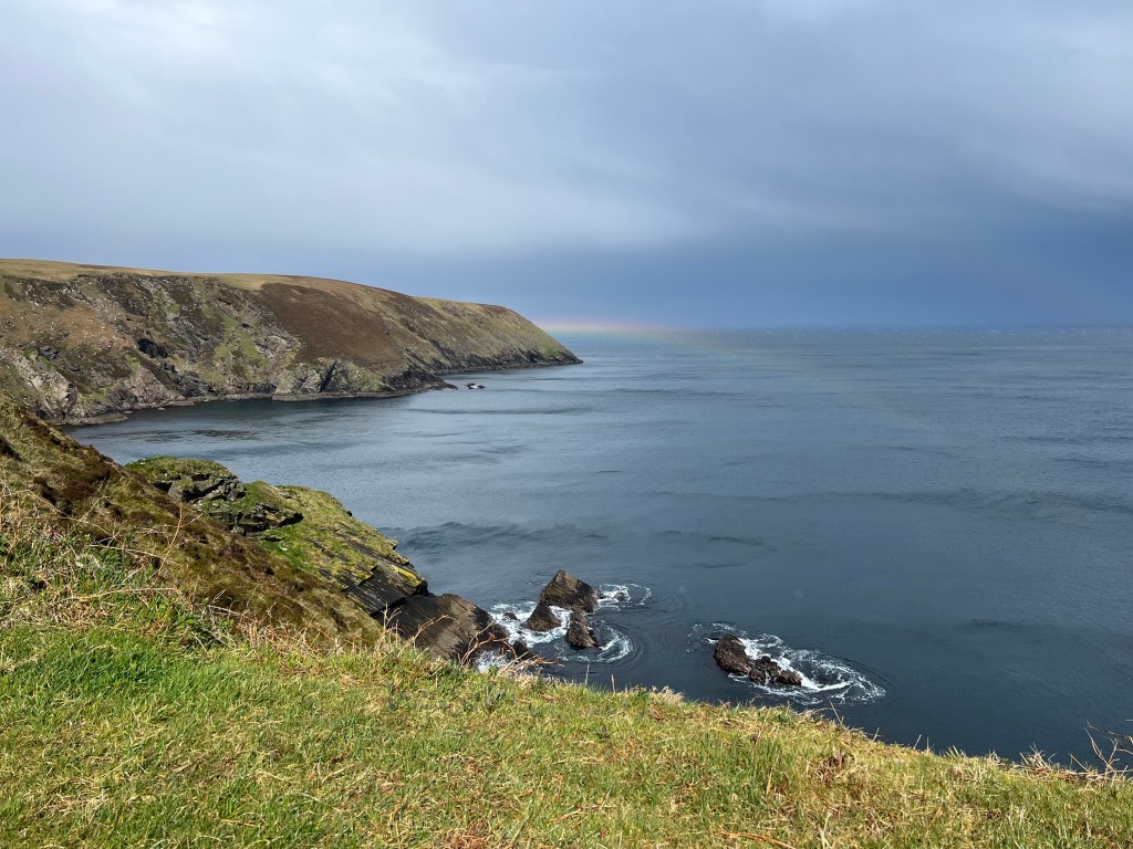 Luckily I had a downloaded trail map and pulled out my phone, quickly realizing I needed to go due south for a bit to get back on track. Squish, squish, squish went my feet as I righted myself and found the trail. Within 15 minutes it was over and the blue skies returned. A rainbow began to form in the distance off the northern tip of the peninsula.